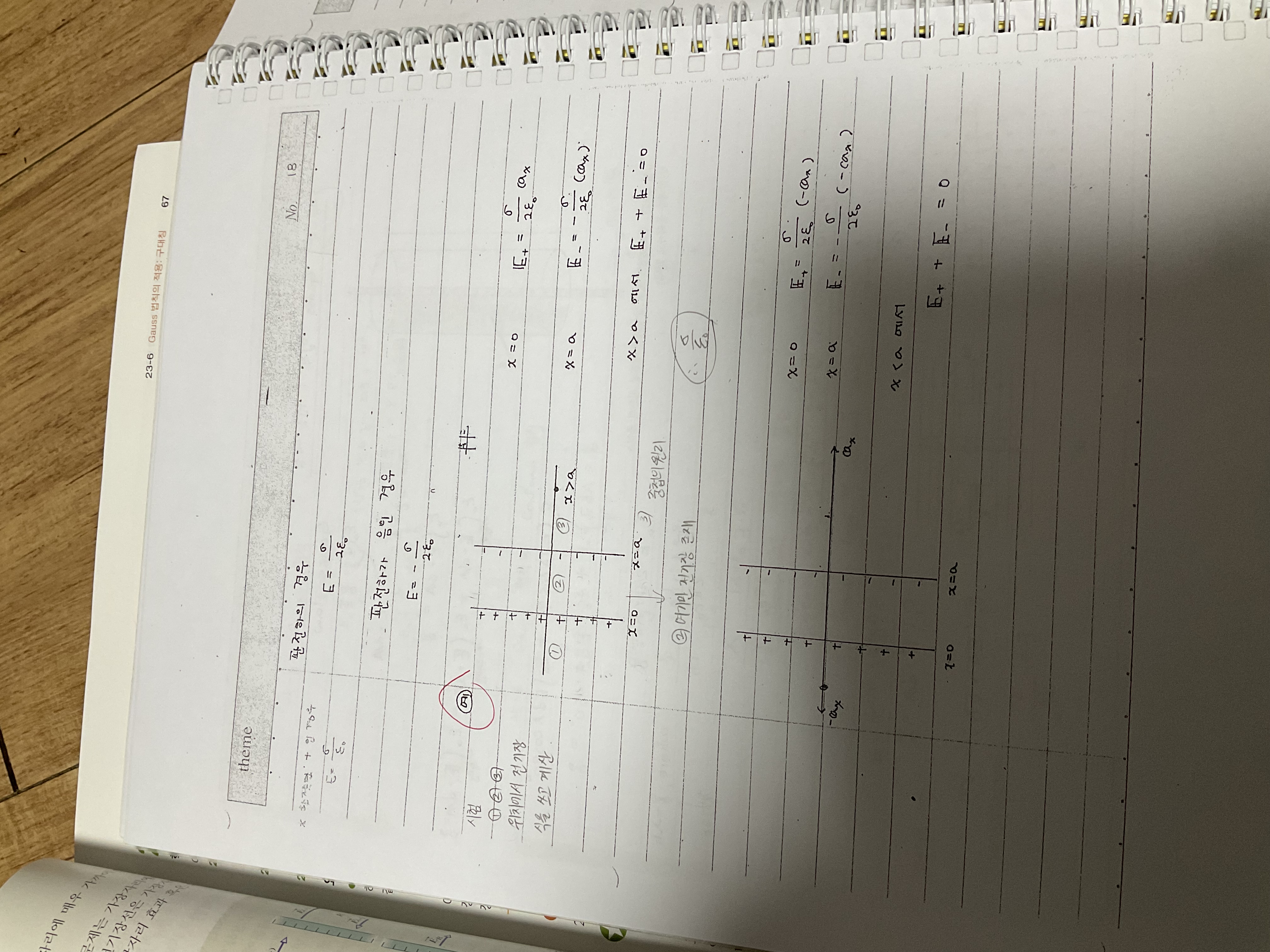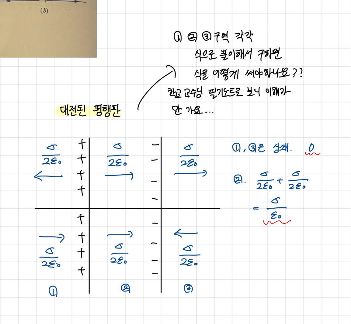 (2) 구역은 두 전기장의 방향이 동일하므로 중첩에 의해 σ/ε0 를 작성하면 될 듯한데